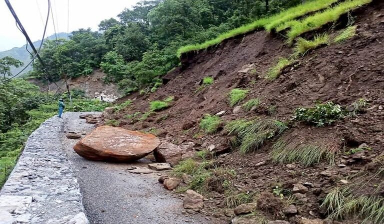 Landslide damaged retaining wall at Galje, causing Surkhet-Jumla section of Karnali Highway to remain blocked for three days, stranding large...